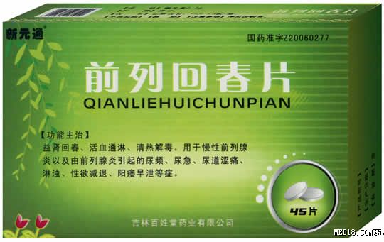 【功能主治】:益腎回春、活血通淋、清熱解毒。用于慢性前列腺炎以及有前列腺引起的尿頻、尿急、尿道澀痛、淋濁、性欲減退、陽(yáng)痿早泄等癥。(OTC)