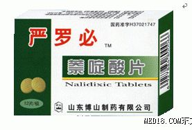 藥代動(dòng)力學(xué) 口服后自胃腸道迅速吸收,部分在肝臟代謝成為具抗菌活性的與萘啶酸相仿的羥化萘啶酸并經(jīng)腎臟快速排泄。本品以原型及代謝物經(jīng)尿排泄。其他代謝物包括與萘啶酸、羥化萘啶酸結(jié)合的葡萄糖醛酸及二羧酸衍生物。羥化萘啶酸占血液中藥物生物學(xué)活性的30%,尿液中活性的85%??诜?g后 2小時(shí)在血漿中的峰濃度為20~50mg/L,血消除半衰期(t1/2?) 約1~2.5小時(shí)。萘啶酸的血漿蛋白結(jié)合率為93%,羥化萘啶酸的血漿蛋白結(jié)合率為63%。給藥后3~4小時(shí)尿液中的峰濃度(Cmax)為150~200mg/L,t1/2約6小時(shí)。本品約4%經(jīng)糞便排泄,也可從乳汁中分泌。本品可透過(guò)胎盤(pán)屏障。